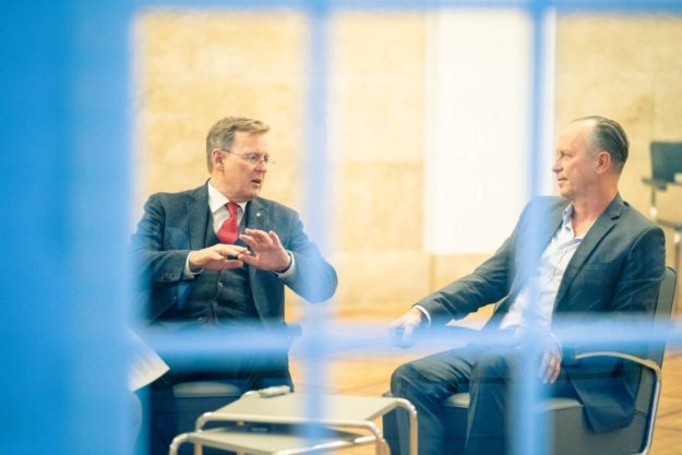 TOP sprach im Nationaltheater mit Thüringens Ministerpräsident Bodo Ramelow und DNT-Intendant Hasko Weber über einen furchtbaren Irrtum, bürgerliche Brüche und eine revolutionäre Urzelle.