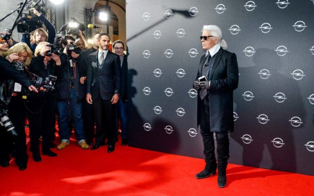 Karl Lagerfeld eröffnete am 3. Februar mit einer Vernissage im Palazzo Italia in Berlin die Opel-Ausstellung „Corsa Karl und Choupette“.